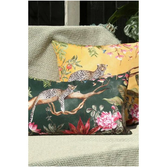 Amongst the tropical foliage, features a striking Leopard printed on a durable water resistant polyester. The Leopard outdoor cushion is the perfect addition to your garden. Made using water resistant polyester, this outdoor cushion is designed to withstand showers and spills.