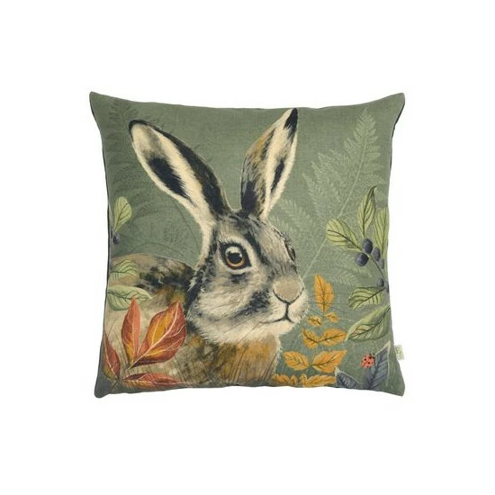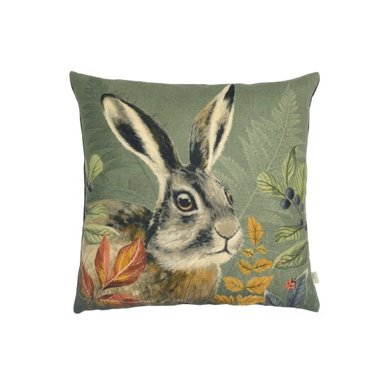 Bring a little wildlife to your interior with this super sweet hand painted Hare design. The appealing nature of the Hare on a neutral coloured background with autumnal leaves and a contrasting velvet reverse makes this cushion the perfect touch to any home.