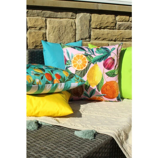Add a pop of colour to your garden this summer. Featuring a bold watercolour print of citrus fruits, this cushion is the perfect accompaniment for that outdoor experience.