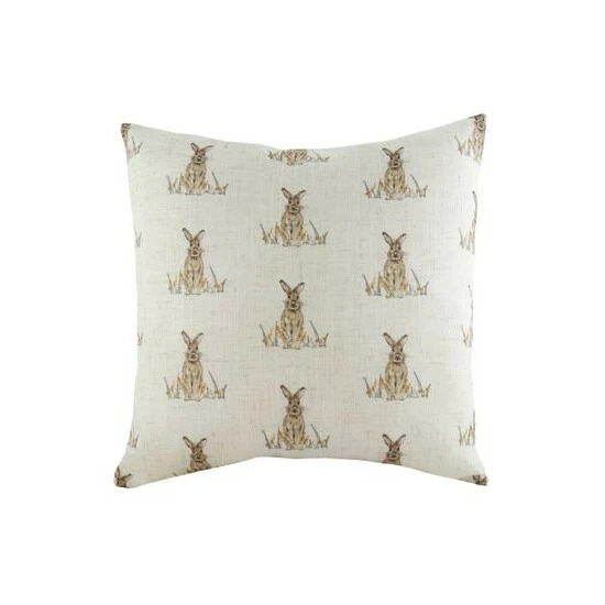 Bring a little wildlife to your interior with this super sweet hand-painted repeating Hare design. The neutral colours of this cushion and the appealing nature of this poised Hare and contrast piping makes this cushion the perfect touch to any home.