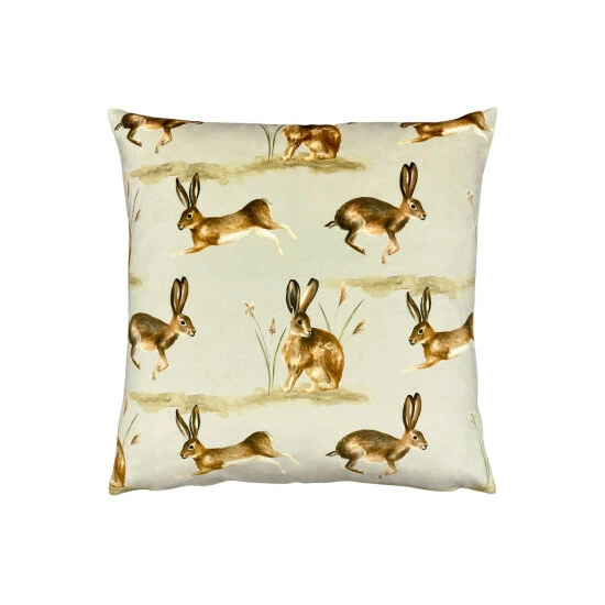 Featuring a repeating design of leaping Hares, on a taupe velvet fabric. Complete with a soft velvet reverse,standard knife edging and hidden zip closure. Made of 100% Polyester, making this cushion super comfy and durable.